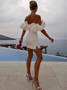 إلورا | فستان أنيق بأطراف – أكتاف مكشوفة وقصة أنثوية