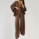 Tento set spojuje vzdušnou tuniku s širokými kalhotami pro elegantní siluetu. Navržen tak, aby poskytoval optimální volnost pohybu, je ideální pro horké dny. Perfektní pro neformální výlety nebo chvíle odpočinku doma.