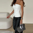 Αυτή η τοπ μπλούζα χωρίς τιράντες προσφέρει μια κολακευτική γραμμή. Ο πολυλειτουργικός σχεδιασμός της προσαρμόζεται σε διάφορες περιστάσεις. Ελαφριά και άνετη, είναι ιδανική για καθημερινή χρήση.