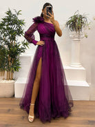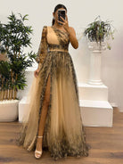 Adeline | Pitkä Kukallinen Tylli Mekko, jossa On Halkaisu – Eleganssia ja Hienostuneisuutta