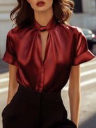 Tämä tyylikäs paita hurmaa modernilla kaula-aukollaan, jossa on hienovarainen aukko. Sen löysä leikkaus sopii kaikille vartalotyypeille, tarjoten mukavuutta ja hienostuneisuutta. Monikäyttöinen, se sopii yhtä hyvin virallisiin tilaisuuksiin kuin rentoihin hetkiin.
