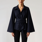 • עיצוב מתקפל עם צווארון בצורת V לסילואט אלגנטי.