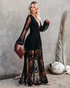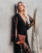 Vera | Abito Lungo Nero Ricamato Silhouette Slanciata e Moderna