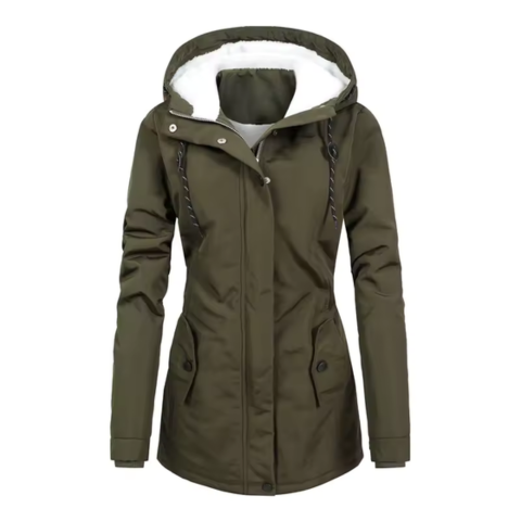 Xavia | Lang Koselig Jakke For Damer — Hette Og Kontrastfôr