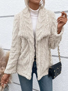 Denne jakken gir en myk varme og umiddelbar komfort samtidig som den fremhever silhuetten med en elegant stil. Dens flytende snitt og nøye detaljer gjør den til et uunnværlig plagg for sesongen. Lett å kombinere, den tilpasser seg både hverdagslook og mer kledde anledninger.