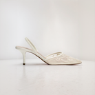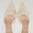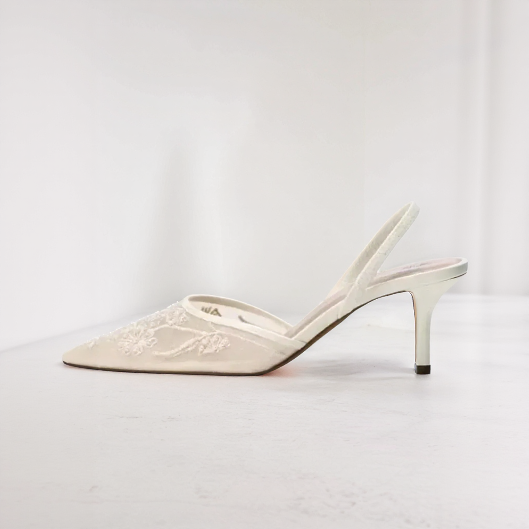 Dessa klackskor kännetecknas av en fin blommönstrad broderi på en lätt och transparent ovandel. Deras spetsiga tå förlänger silhuetten med elegans, medan den justerbara remmen säkerställer ett tryggt stöd samtidigt som den ger en touch av förfining.